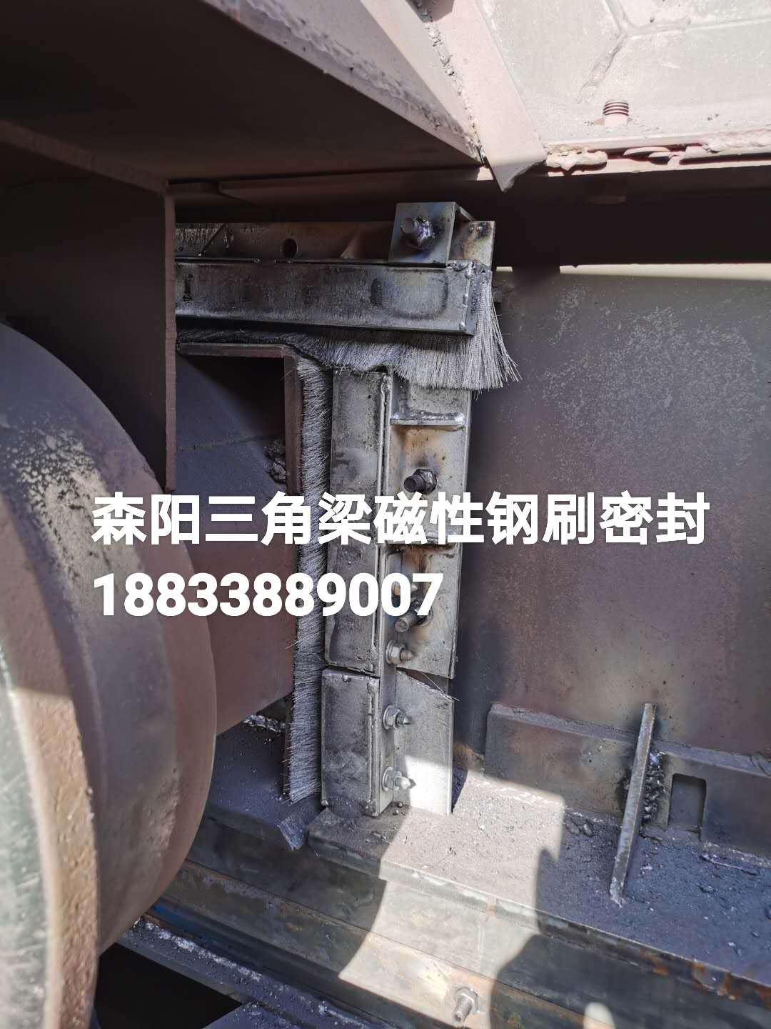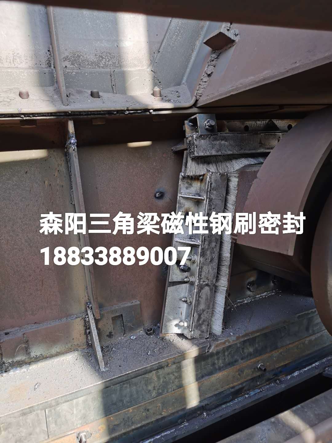 環(huán)冷機三角粱磁性鋼刷式密封,彈性結(jié)構(gòu)自動調(diào)節(jié),磁體吸附含鐵物料和多層鋼刷形成柔性密封層,密封效果好,耐用性好 |